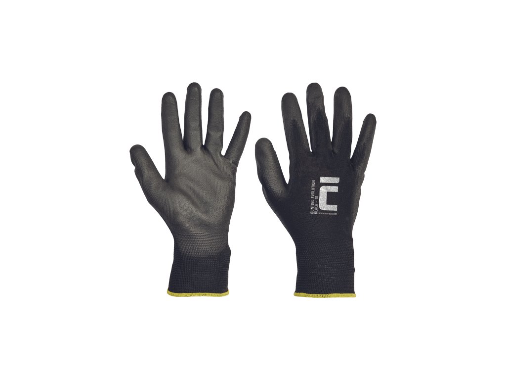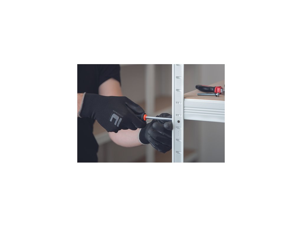 • pletené bezešvé polyesterové rukavice • s tenkou vrstvou polyuretanu v dlani a na prstech • pružná manžeta