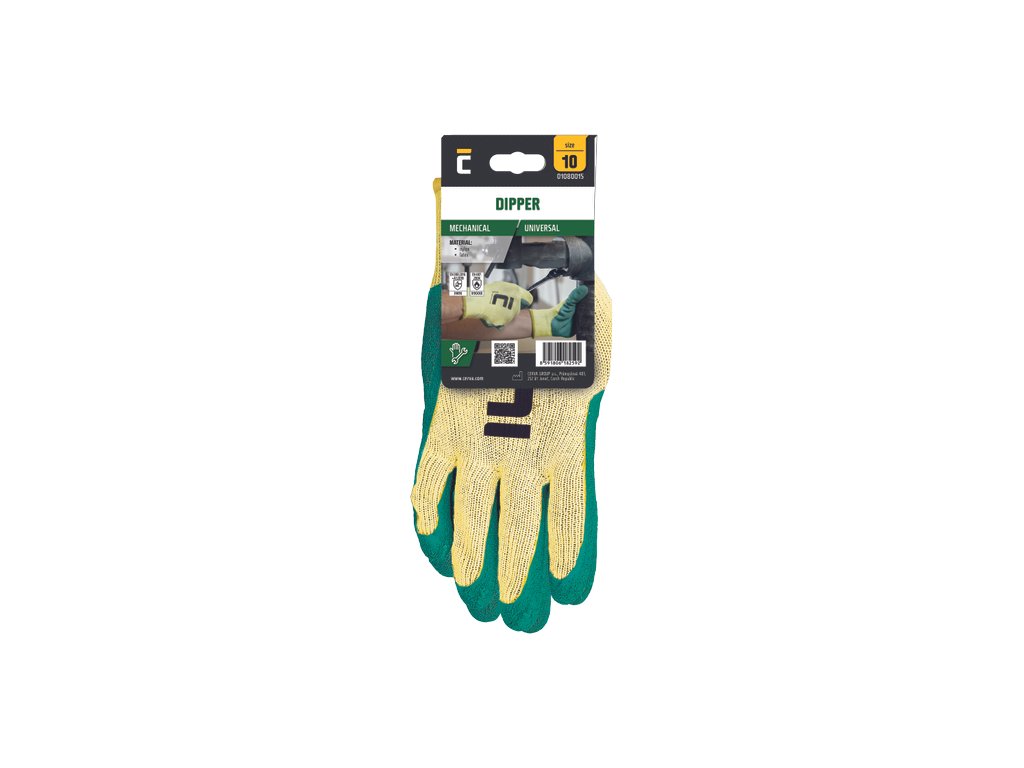 • pletené bezešvé nylonové rukavice • polomáčené v latexu • protiskluzová úprava v dlani a na prstech • pružný náplet na zápěstí