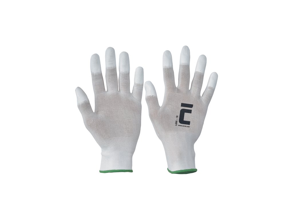 • pletené bezešvé nylonové rukavice • s tenkou vrstvou polyuretanu na špičkách prstů • pružná manžeta