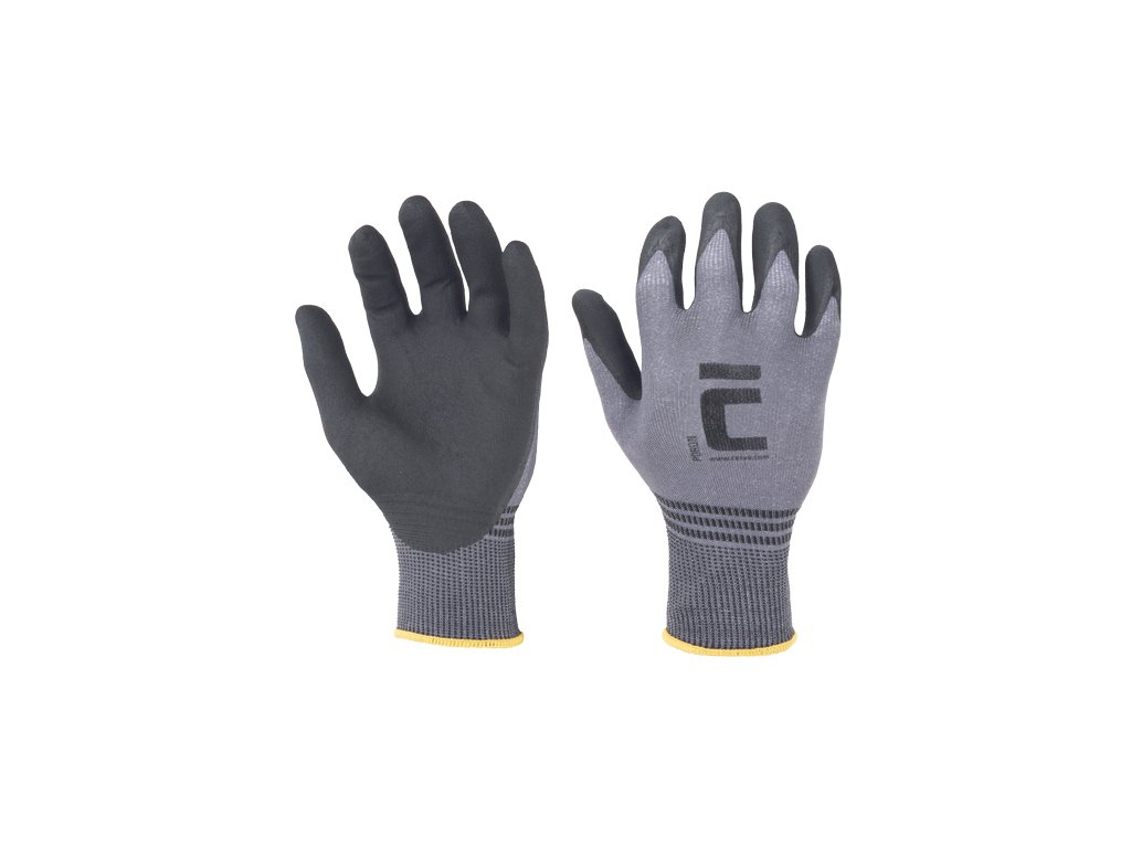 • bezešvé rukavice z nylonu a spandexu se speciálním pěnovým nitrilovým povrstvením zajišťující rukavici dlouhou životnost • vynikající úchop za sucha i v olejnatém prostředí • možnost ovládat dotykové obrazovky • prodyšnost • při výrobě nižší spotřeba o 30 % méně energie a o 63 % méně emisí CO2, než při výrobě běžných bezešvých rukavic máčených v nitrilu • výtečná ochrana vůči oděru, výdrž přes 19.500 cyklů • hustota úpletu 15 GG