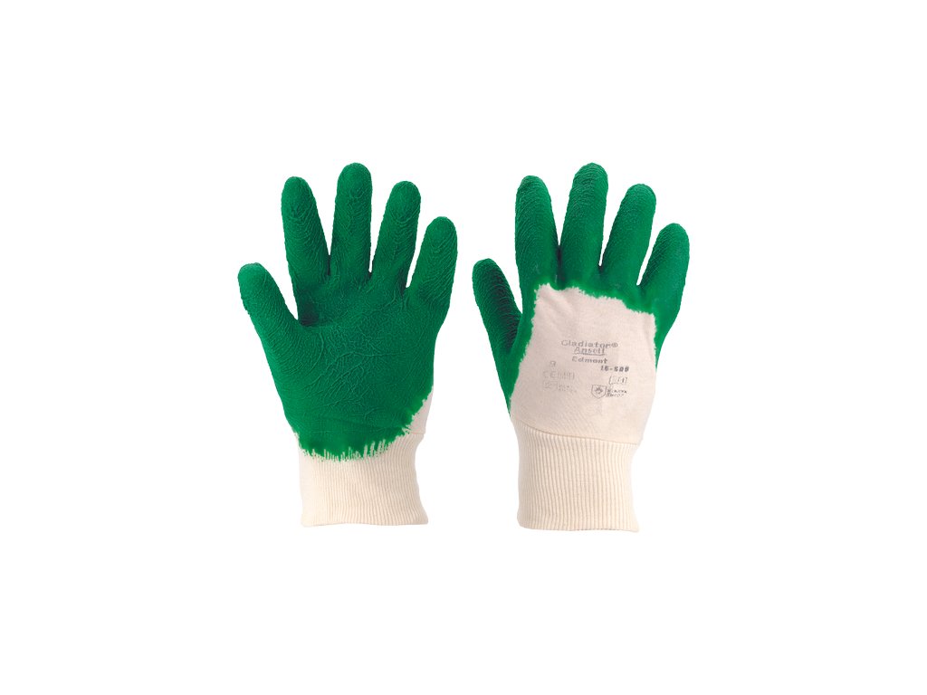 • rukavice šité z bavlněného úpletu • dlaň a prsty máčené v kaučuku • s protiskluzovou úpravou • náplet na zápěstí