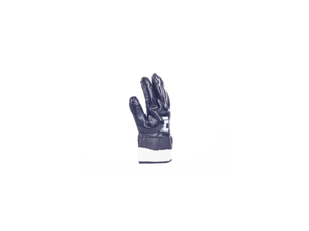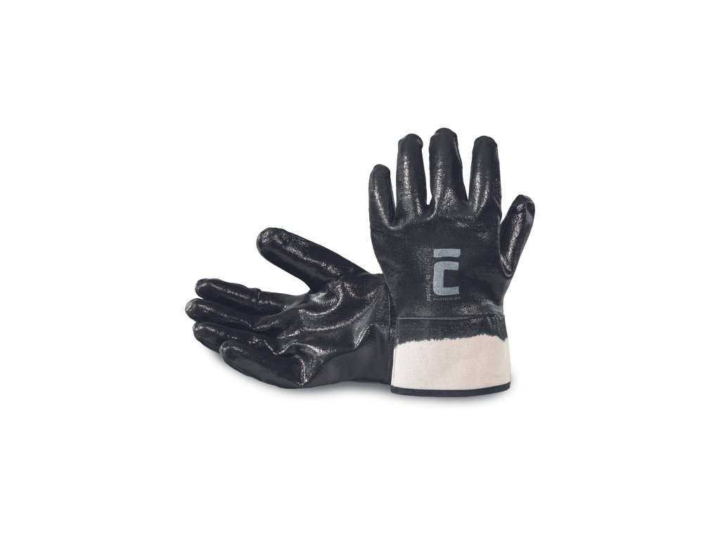 • rukavice šité z bavlněného úpletu • celomáčané v černém nitrilu • pevná manžeta
