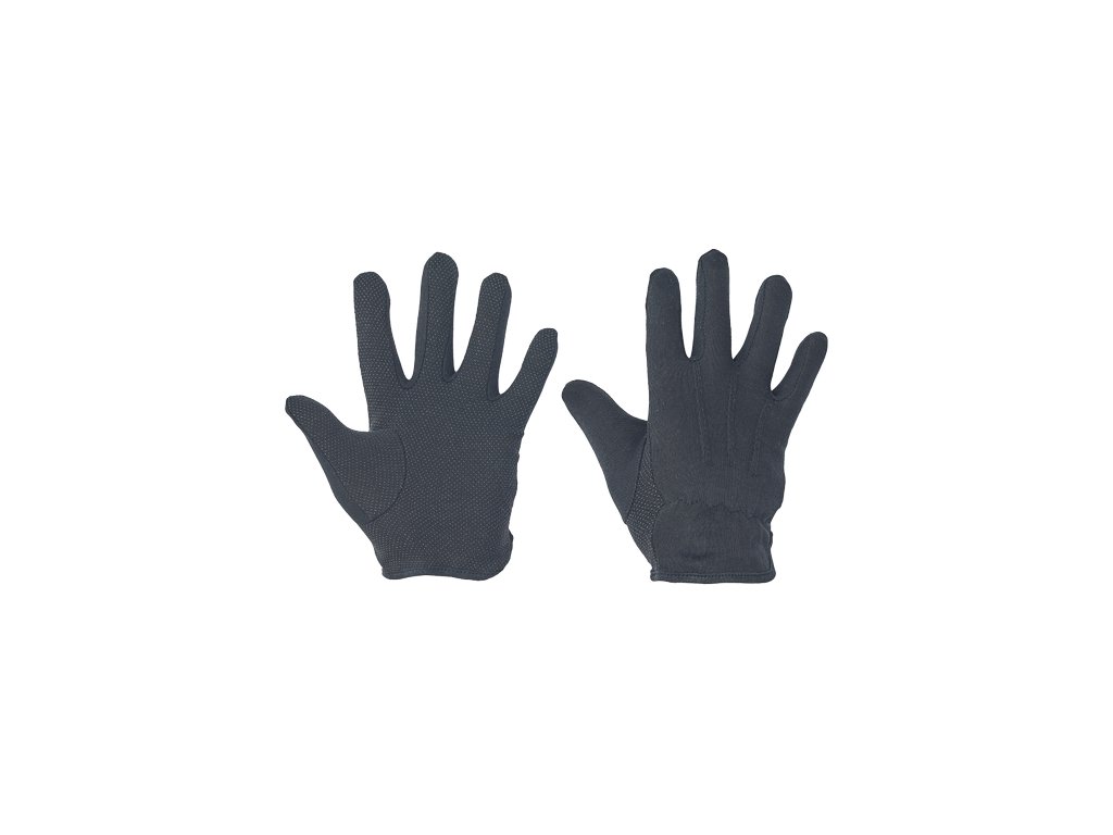 • rukavice šité z bavlněného úpletu • s PVC terčíky v dlani a na prstech • pružinka na horní části zápěstí • bez manžety