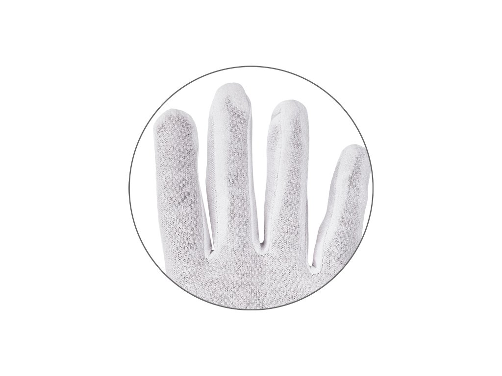 • rukavice šité z bavlněného úpletu • s PVC terčíky v dlani a na prstech • pružinka na horní části zápěstí • bez manžety