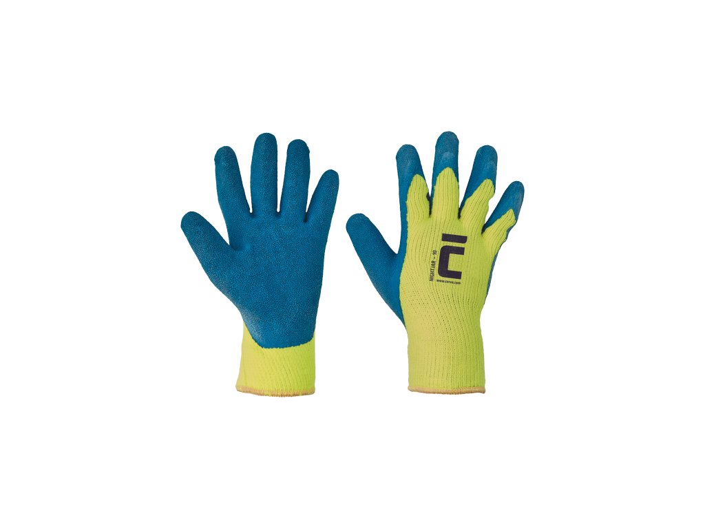 • pletené bezešvé akrylové rukavice • polomáčené v přírodním latexu• se zdrsněnou dlaní