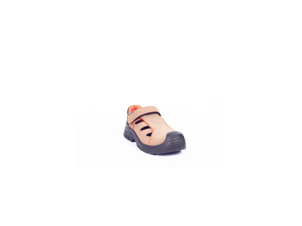 Bezpečnostní sandál s kompozitní tužinkou a aramidovou stélkou odolnou proti propíchnutí. Podešev – PU / PU. Svršek je vyroben z kvalitní nubuk kůže. Výrazná perforace svršku zajišťuje perfektní prodyšnost.