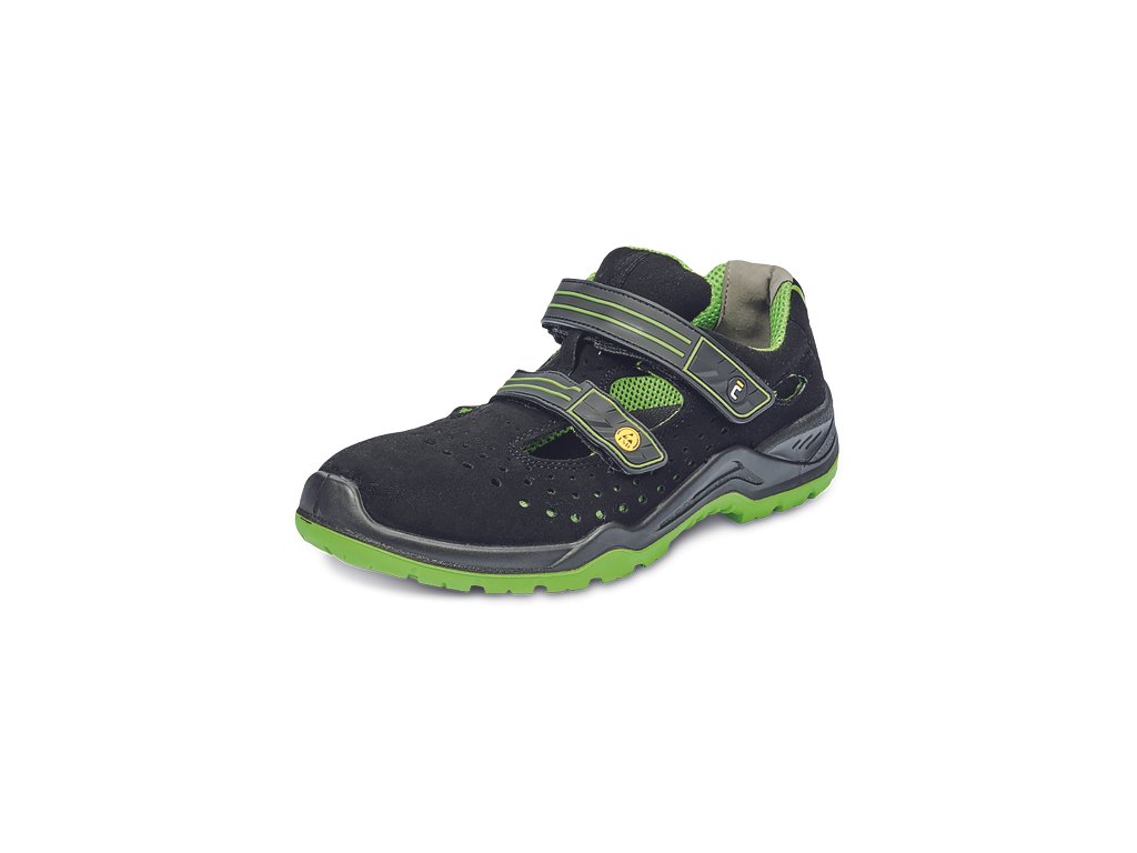 Bezpečnostní sandály v moderní černo-zelené barevné kombinaci. Svršek obuvi je vyrobený z mikrovlákna a perforovaný po cele délce. Protiskluzová podešev vyrobena z dvouhustotního polyuretanu zajišťuje nejenom komfort, ale také maximální jistotu při každém kroku. Obuv je vybavena komfortní, perforovanou vnitřní stélkou, která garantuje pohodlí a cirkulaci vzduchu uvnitř boty. Absorpce energie v oblasti paty tlumí nárazy a omezuje pocit únavy nohou. Díky bezpečnostní kompozitní tužince obuv splňuje požadavky normy EN ISO 20345:2011. To znamená, že chodidla jsou chráněna před stlačením silou do 15 kN nebo pádem břemena o vaze do 20 kg z výšky 1 m. Chodidla jsou chráněna také ze spodu, a to díky kompozitní stélce, proti propichu. Obuv neobsahuje kovové součásti a je vybavena funkcí ESD. Proto je to ideální model pro vnitřní prostory a citlivé prostředí, kde je potřeba zabránit vzniku jisker z elektrostatického výboje anebo pro prostory vybavené bezpečnostním rámem. Díky minimalistickému designu se tento model bude skvěle hodit k většině kolekcí pracovních oděvů Cerva.