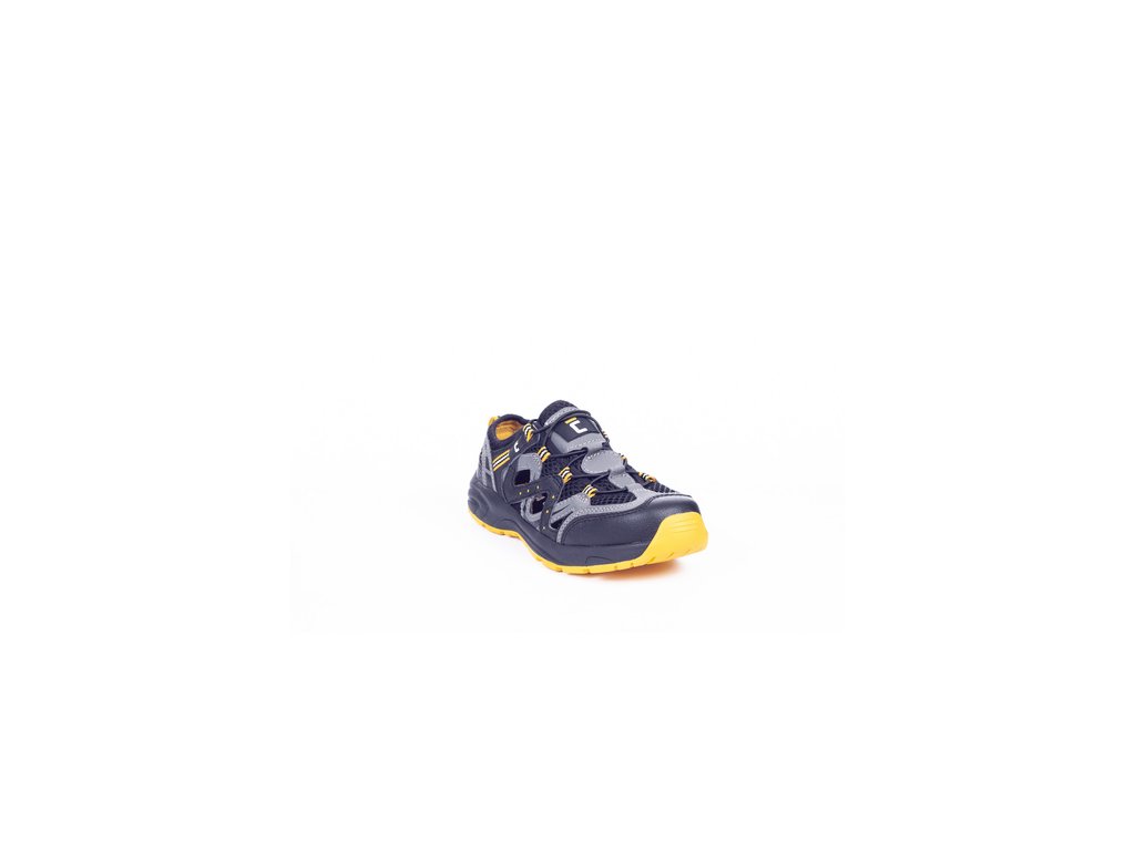 Extrémně lehký a pohodlný pracovní sandál vhodný pro nenáročnou práci ve vnitřních prostorech nebo venku během letního období. Svršek obuvi je vyrobený z přírodní kůže a prodyšné síťoviny, díky čemu je garantovaná správná cirkulace vzduchu. Podešev vyrobená z kombinace phylonu a gumy zajišťuje nejenom perfektní protiskluzové vlastnosti, ale také vysokou odolnost proti opotřebení. Uzavíraní pomocí elastických tkaniček umožnuje ideálně přizpůsobit obuv k tvaru nohy. Žluté doplňky zvyšují viditelnost uživatele.