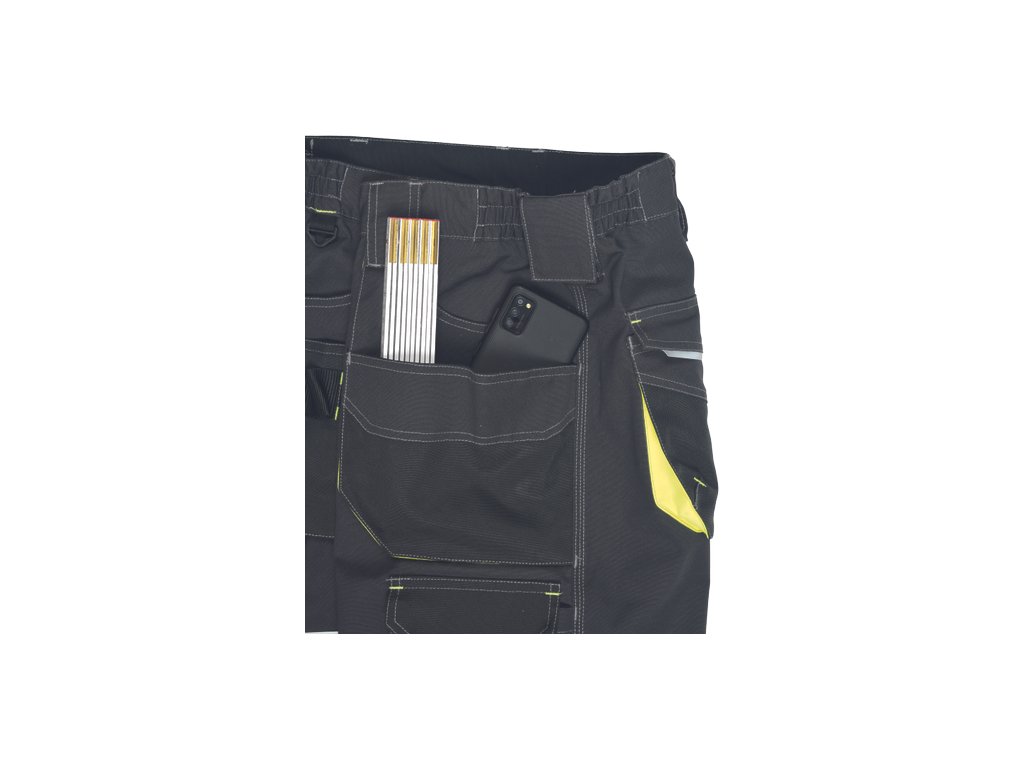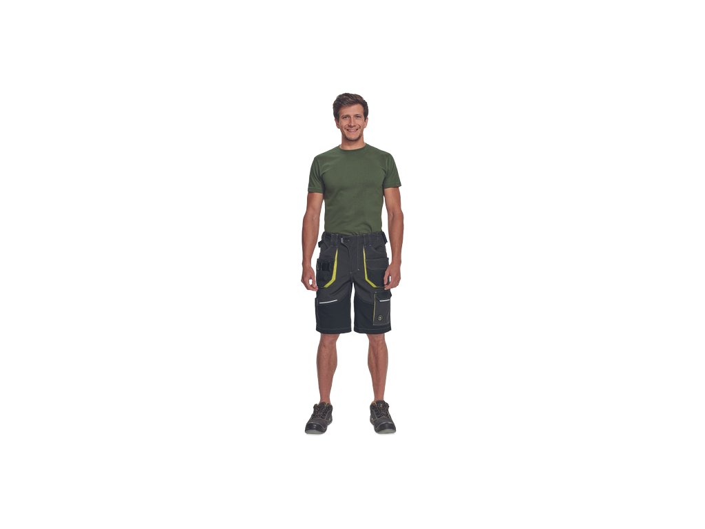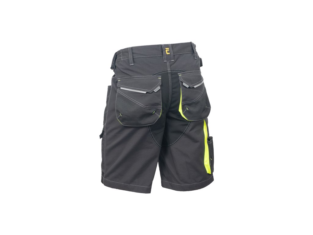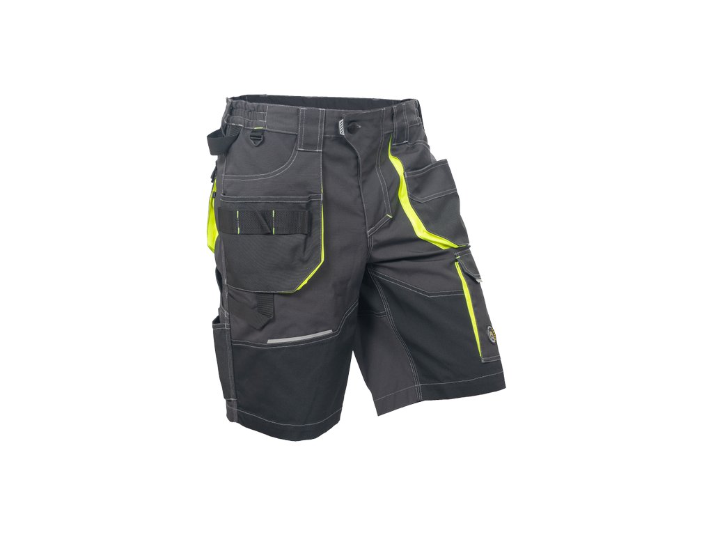 • pánské pracovní šortky s pružným pasem a multifunkčními kapsami • Oxford 600D zesílené spodní části kapes • odolné trojité prošití nohavic a sedu • reflexní prvky