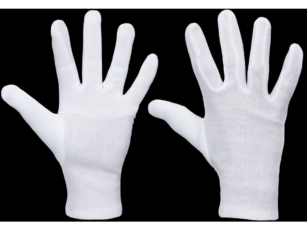 Rukavice z bělené 100% bavlny ve stylu fourchete, dvojitá dlaň.