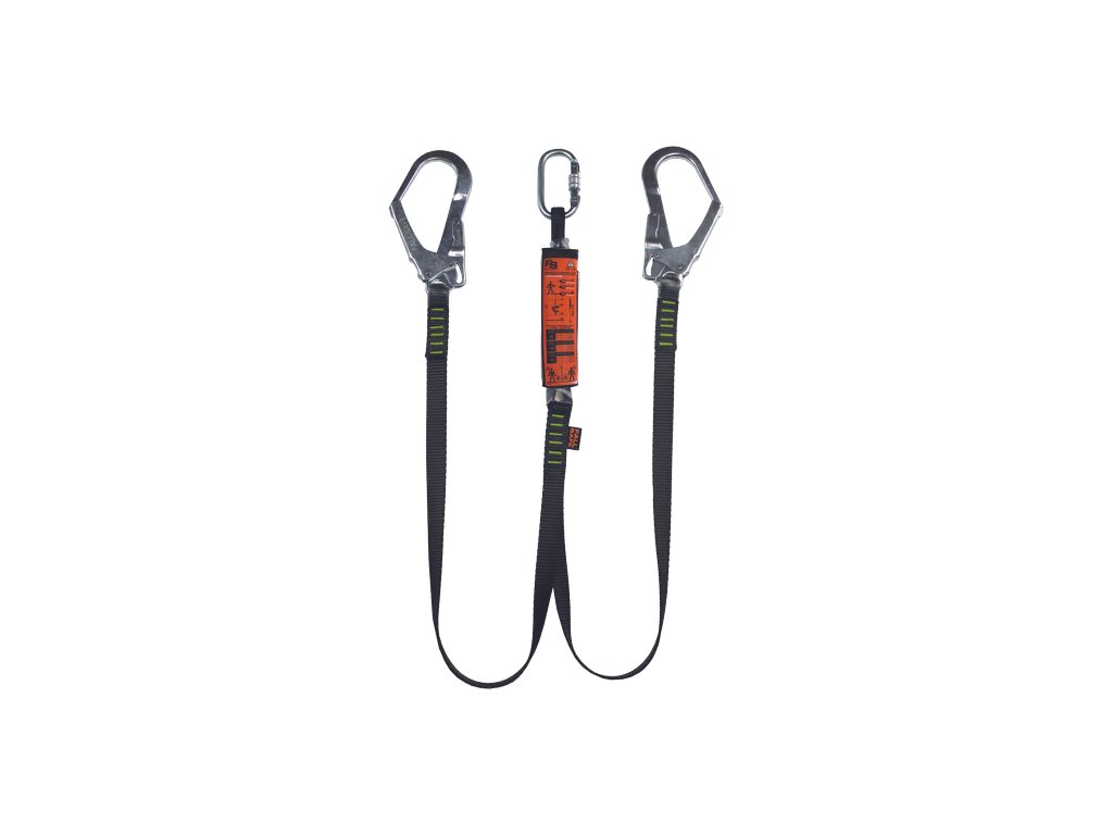 • CHIMANGO double tlumič pádu je vyroben z 27 mm širokého polyesterového popruhu a tlumiče energie, který omezuje sílu nárazu pod 6 kN • fyzicky spojuje uživatele s konstrukcí pracoviště a zastavuje volný pád uživatele • otevření karabin 56 mm • specifikace: materiál ocel a polyester • délka 1,5 m