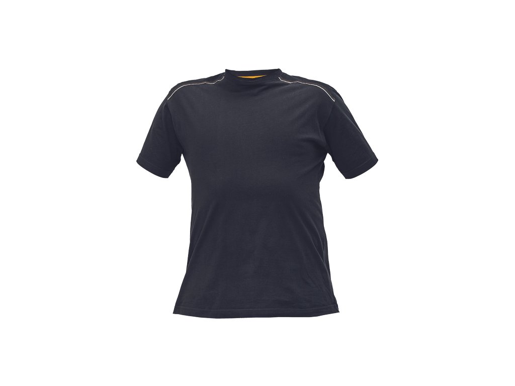 • pánské tričko z bavlněného úpletu • sedlo v kontrastní černé barvě lemované reflexní paspulkou • dekorativní prošití k HI-VIS barvách