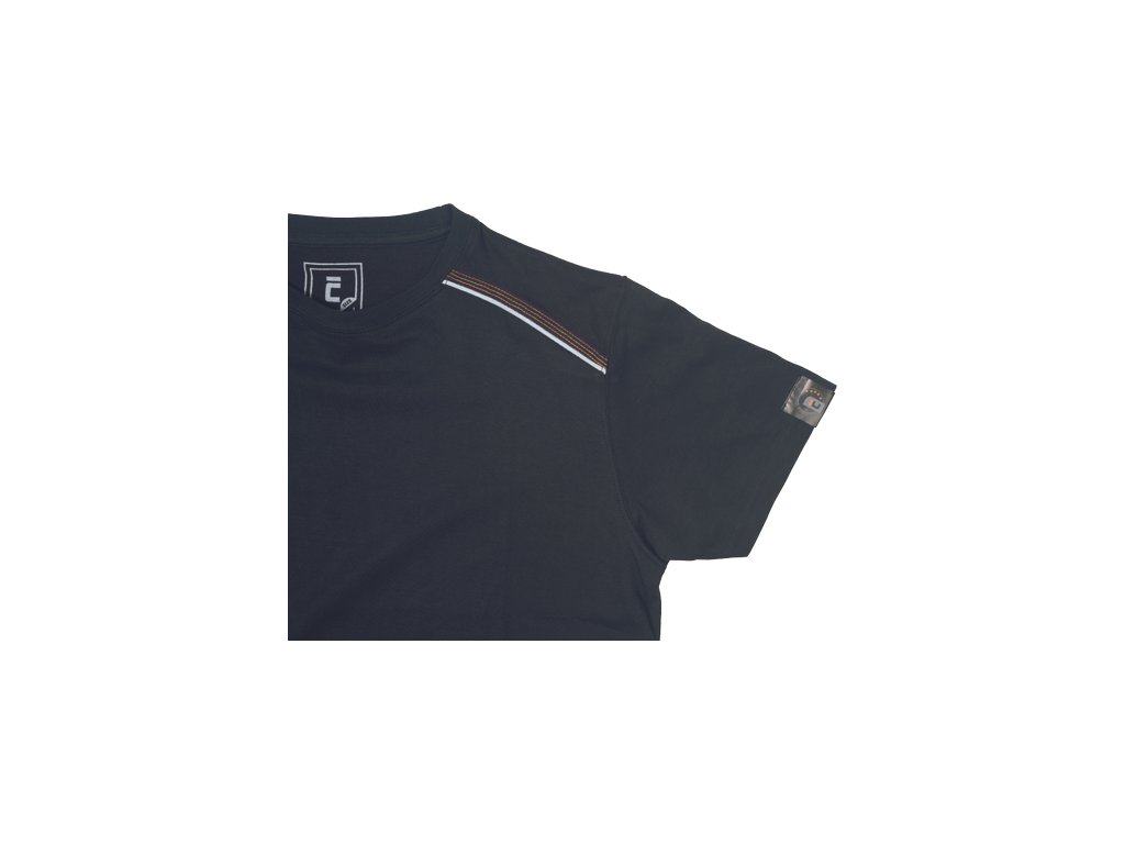 • pánské tričko z bavlněného úpletu • sedlo v kontrastní černé barvě lemované reflexní paspulkou • dekorativní prošití k HI-VIS barvách