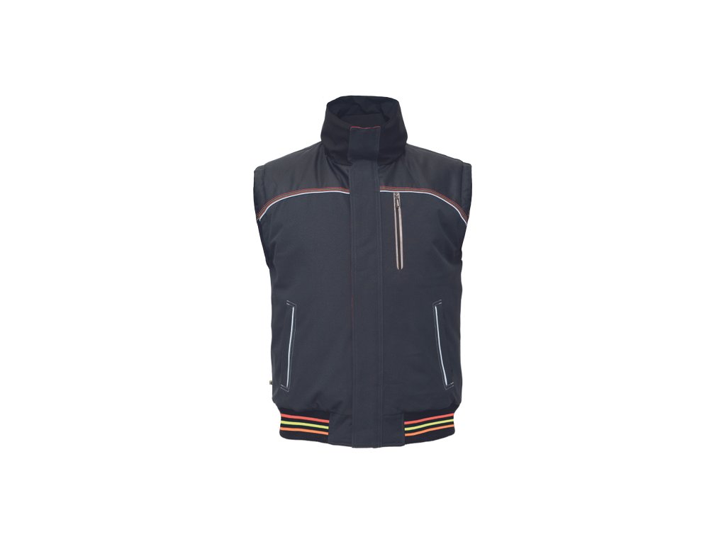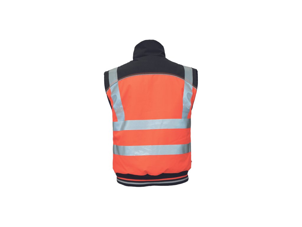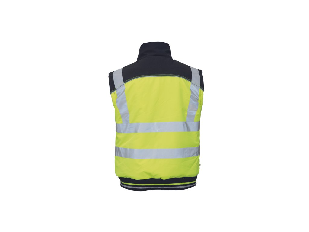• oboustranná pánská zateplená vesta • jednostranná HI-VIS vrstva s tištěnými 5 cm reflexními pruhy • oboustranně využitelné boční kapsy • 600D Oxford zesílení v oblasti ramen • reflexní paspulky • elastický náplet v pase
