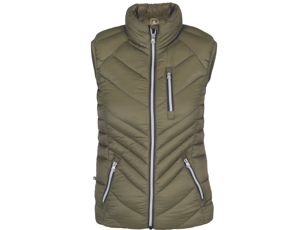 • dámská volnočasová zateplená vesta • zapínání na zip • 2 boční kapsy na zip • 1 náprsní kapsa na zip