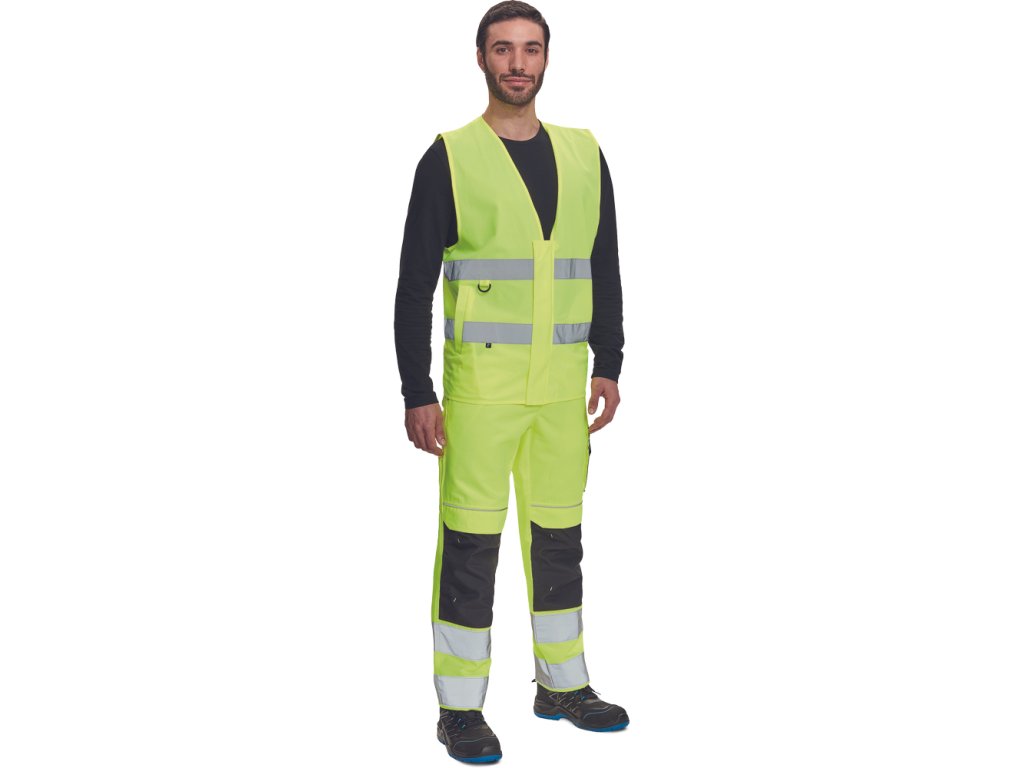 • HI-VIS vesta se 2 reflexními pruhy okolo pasu • zapínání na zip kryté légou • 2 postranní lištové kapsy