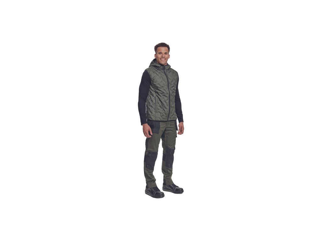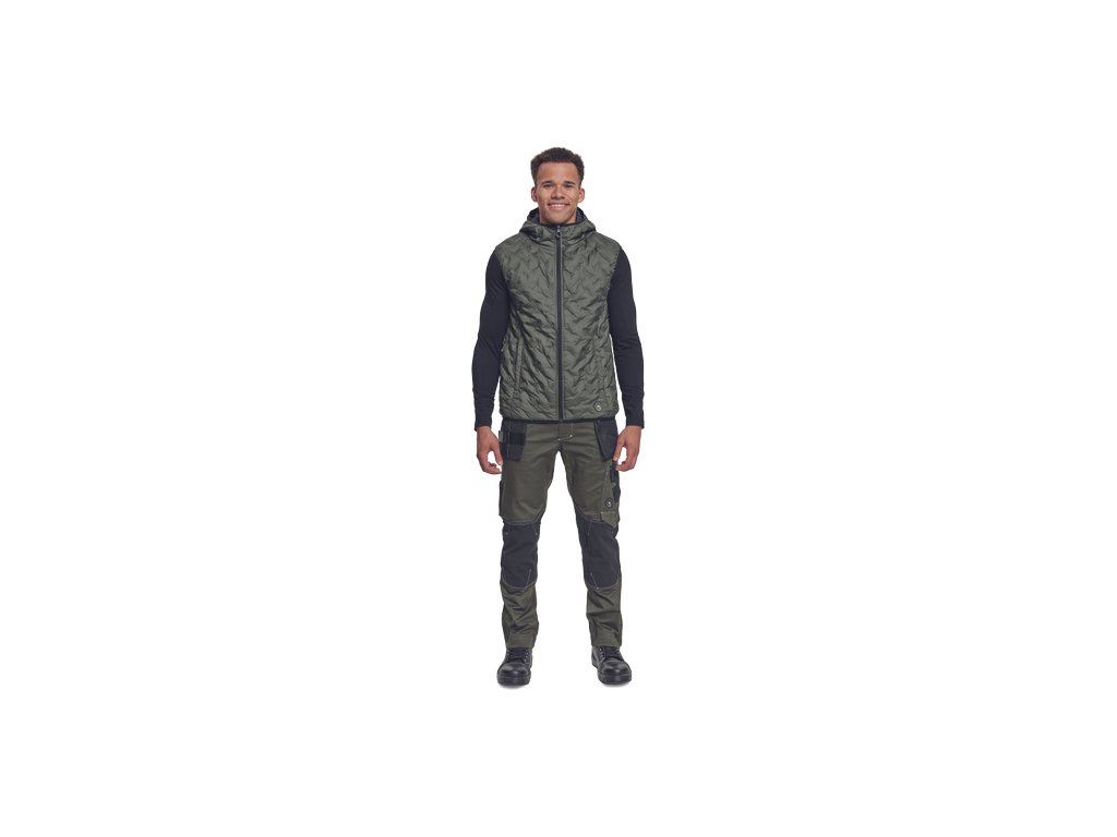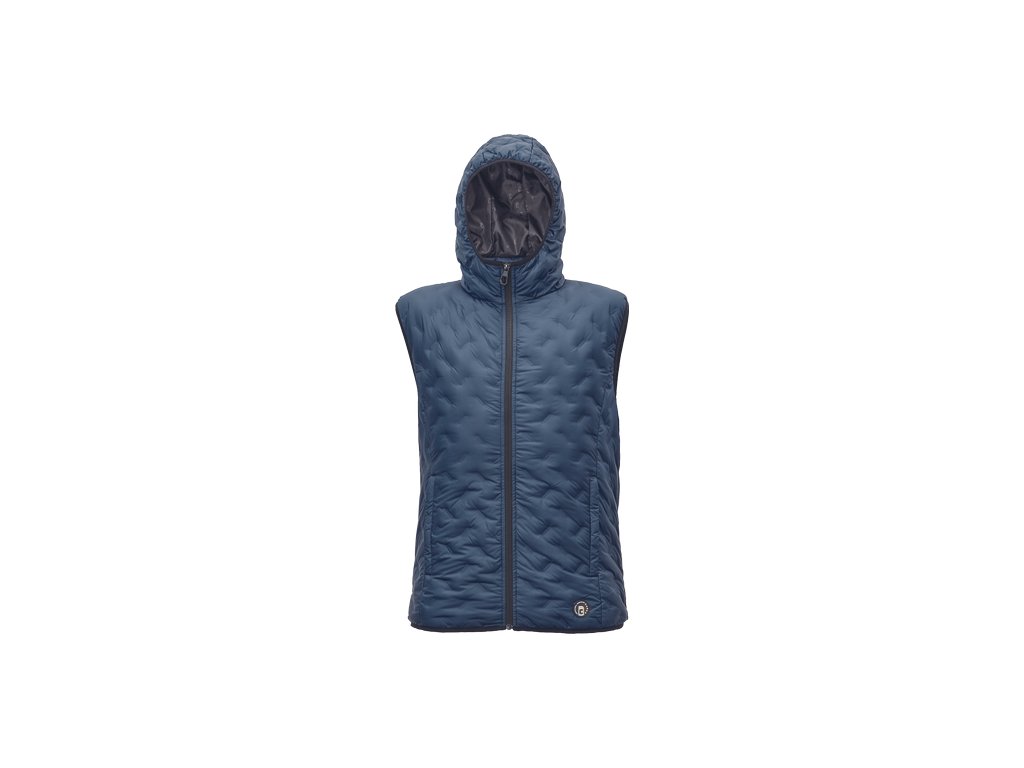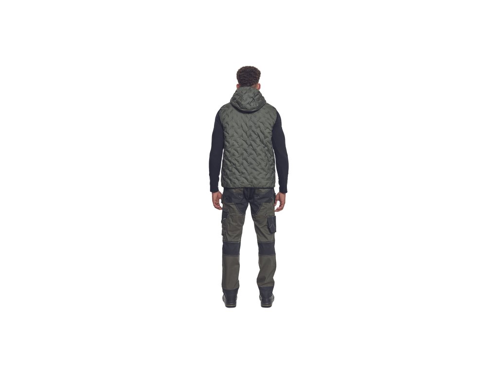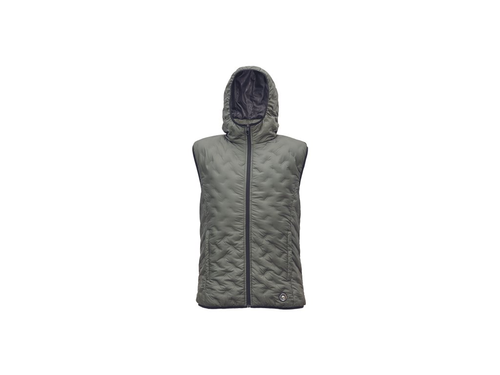 • zimní péřová vesta se zapínáním na zip a kapucí • 2 hluboké postranní kapsy na zip • elastický pas