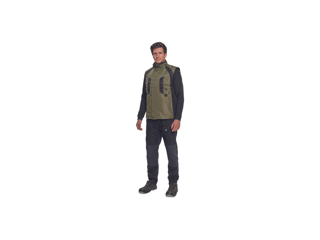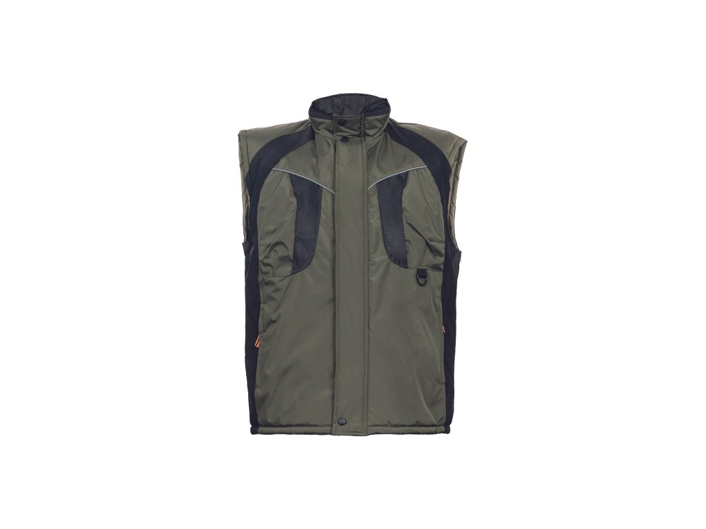 • zateplená nepromokavá pánská zimní vesta se stojáčkem • mechanicky odolná úprava RipStop • zapínání na zip kryté légou • spodní lem ke stažení na šňůrku • 2 postranní kapsy, 2 náprsní kapsy • reflexní doplňky