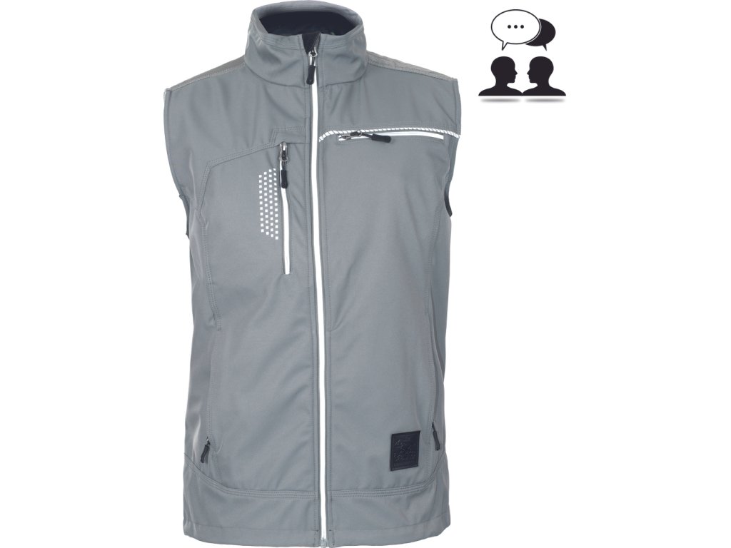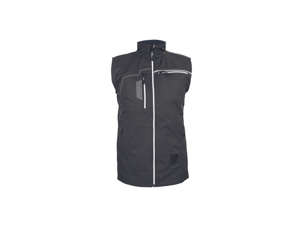 • moderní pánská softshellová vesta • zapínání na reflexní zip • vpravo Napoleon kapsa na zip • vlevo náprsní kapsa • 2 boční kapsy • Cordura zesílení v oblasti ramen • reflexní paspulky pro lepší viditelnost