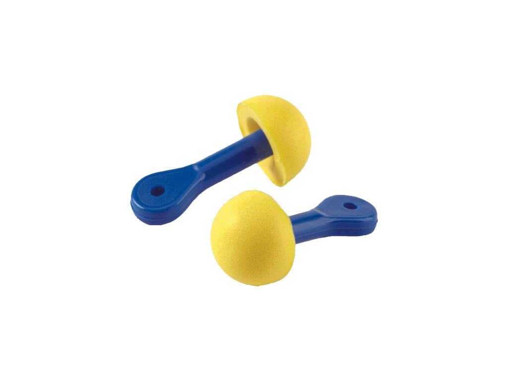 omyvatelné zátkové chrániče sluchu hříbkovitého tvaru, s plastovou rukojetí pro snadné a hygienické zavádění do zvukovodu