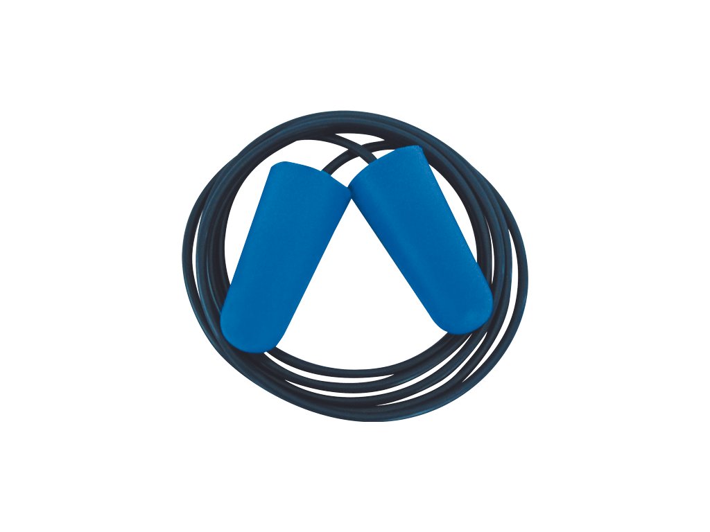 jednorázové zátkové chrániče sluchu z velmi měkké PU pěny v modré barvě, s lankem a kovovou kuličkou detekovatelnou detektorem kovů